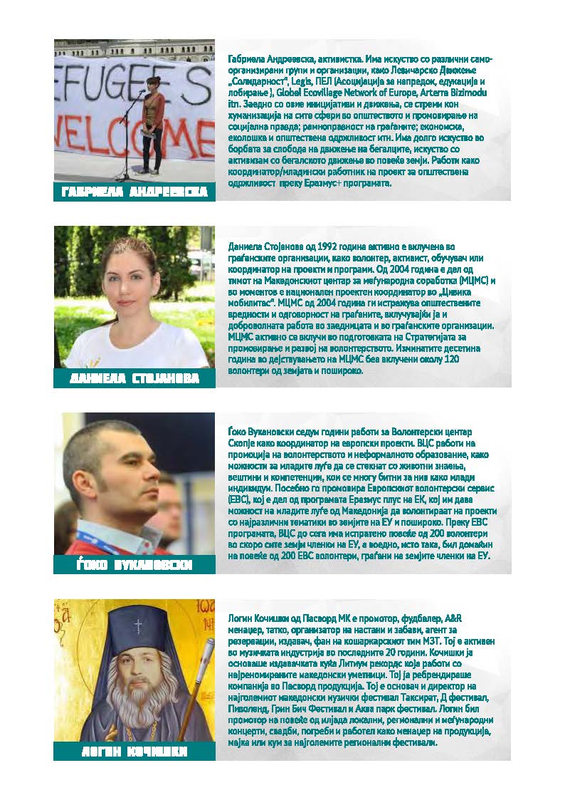 И Габрила Андреевска смета дека волонтерите се исполнети и среќни луѓе „Луѓето во Македонија мора да се потпираат на меѓусебната солидарност затоа што не можат да се потпрат на системот“, вели таа. За Андреевска волонтерска работа има повеќе отколку што перципираме, ама таа не се прави организирано и веројатно оние кои ја прават не ја доживуваат како волонтерство.