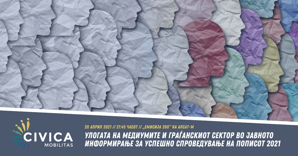 Ве покануваме да го проследите Тематскиот форум на Цивика мобилитас на тема: „Улогата на медиумите и граѓанскиот сектор во јавното информирање за успешно спроведување на пописот 2021“.